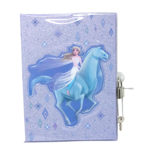 Disney Frozen Elsa & The Waterhorse Diary Inspired from Disney’s Frozen 2. This glittery diary with Elsa & the water horse in 3D has a glossy cover that is easy to wipe clean. Features an Illustrated print cover and 3D puffy Elsa motif. Internal diary pages are lined to keep your writing neat, and it comes with a lock and two keys to keep your secrets safe.