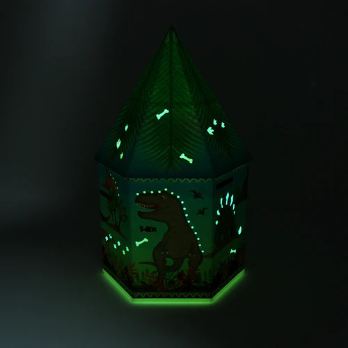 Watch as the light smoothly transitions between a rainbow of colours, lighting up dinosaurs.