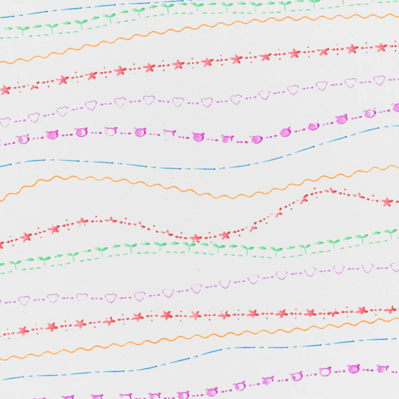 Patterns include stars, hearts, plants, dashes, wiggle and bear