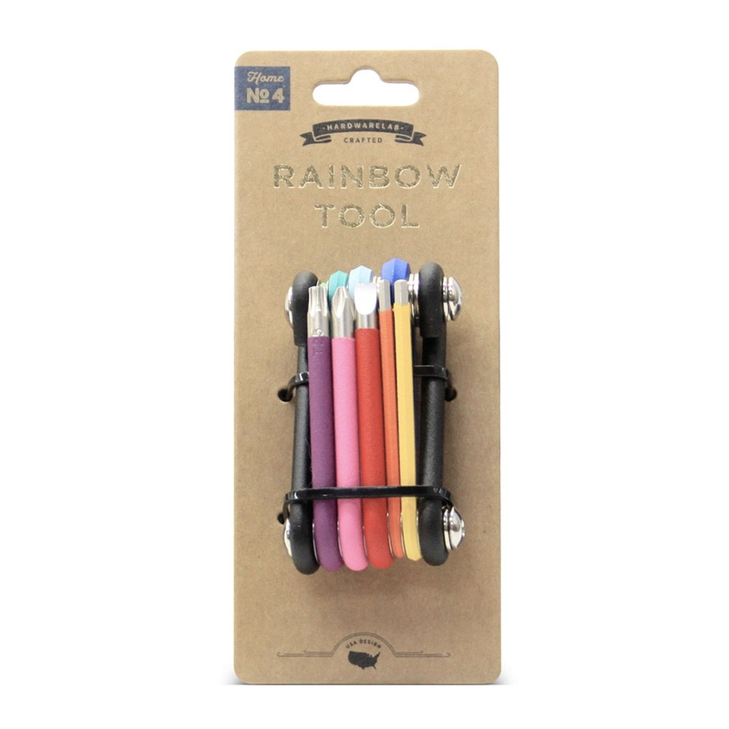 This rainbow allen tool is portable enough to carry around all day, while containing 9 sized heads to fit star screws to to 2mm Allen bolts.